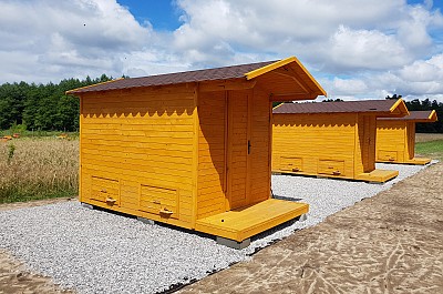 Nasze "ApiDomki" wykonane są w pełni naturalnych materiałów. Większość konstrukcji to specjalne odmiany drewna. W każdym "ApiDomku" montujemy od 2 do 4 uli z pszczołami co oznacza, że w jednym domku do apiterapii znajduje się w całkowicie bezpieczny sposób dla użytkownika blisko 200 tys. pszczół!