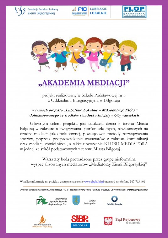 Projekt AKADEMIA MEDIACJI realizowany w ramach projektu „Lubelskie Lokalnie – Mikrodotacje FIO 3”